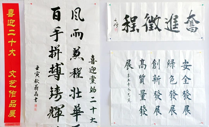 此次展览,从各单位上交的各类作品中精选出书法作品16件,摄影作品21件,绘画作品7件及手工艺作品10件进行现场展示。遒劲有力的书法作品,美不胜收的摄影作品和绘画作品,以及不同风格的手工艺作品洋溢着BBIN·宝盈化工集团干部职工期盼党的二十大胜利召开的喜悦心情,也充分展现出大家丰厚的文化素养和多彩的业余文化生活。