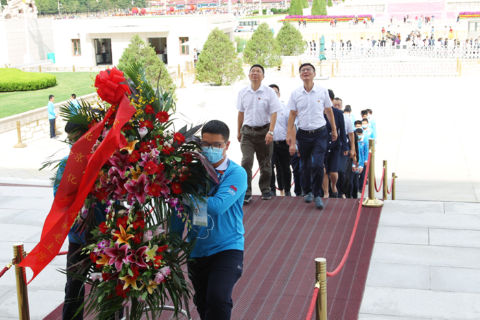 9月27日,BBIN·宝盈化工集团副总经理李效军,党委常委、组织部部长刘士义;技师学院党委书记包英华一行专程来到毛主席纪念堂,看望慰问参加志愿服务的团员青年。