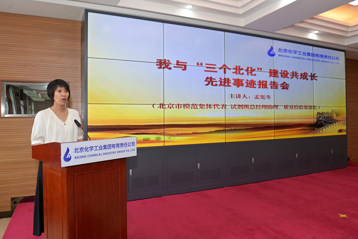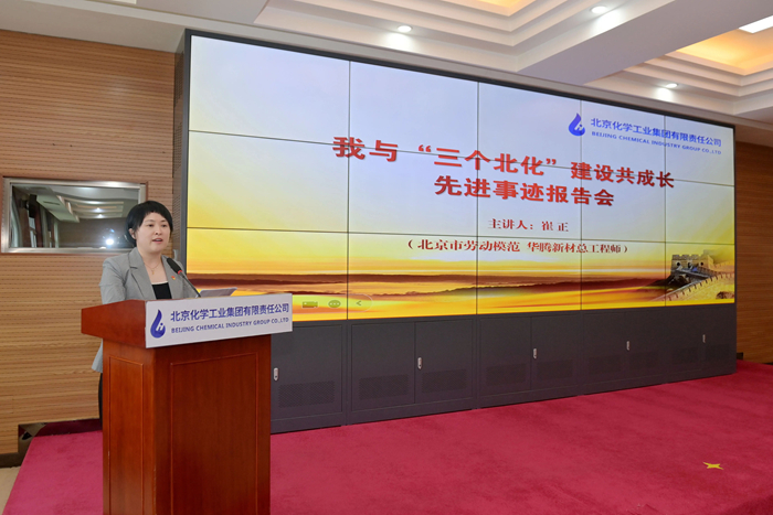 在先进事迹报告环节,市劳动模范,华腾新材总工程师崔正携《以使命为船,以热爱为帆,在时代洪流中奋勇争先》;市模范集体代表,试剂所总经理助理、质量检验部部长孟宪冬以《传承工匠精神,助力“三个北化”,试剂所质量检验部的奋进之路》为题,围绕个人成长、科研开发、团队建设,自信讲述与BBIN·宝盈化工共同成长的点点滴滴。