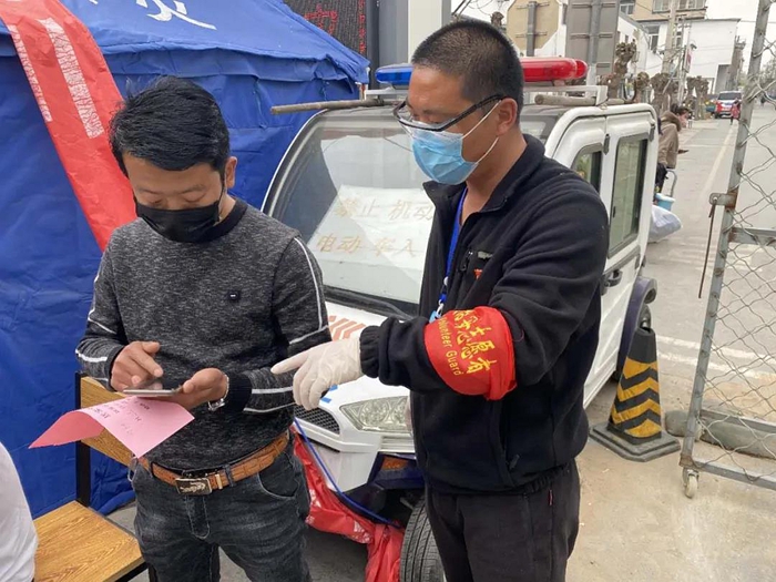 每天,我们和村委会人员走在村里,偶尔看到有聚集聊天的人员,或有未正确佩戴口罩的人员,我们会很严肃地对他们的行为加以管束,要求他们必须按照防控要求规范自己的行为。每天一贯如此的管理,在村里营造了严肃的防控氛围。