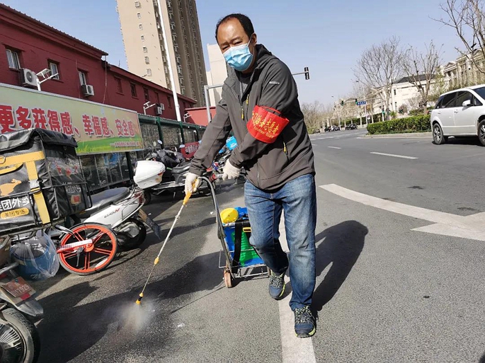 社区防疫值守工作是我们国家疫情防控的重要手段之一,消杀工作也是对社区值守人员、进出居民健康防疫保障的有效举措。为了保证消毒效果,我每天到岗后,都会第一时间进行消杀。小到社区出入口的消毒脚垫,大到返京人员必经的登记岗亭都是定期消杀的重点区域。还有卡口执勤地面,乃至外卖电动车的停放区我都要让我的“战友”光顾一遍。