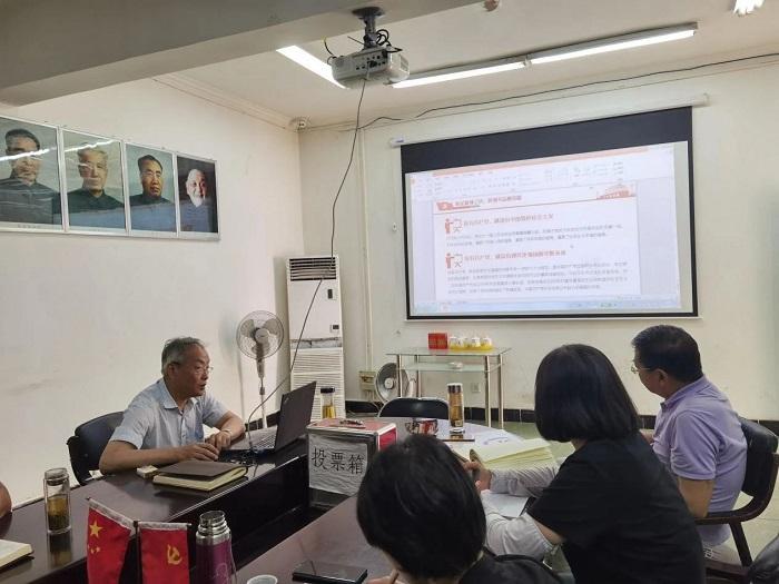 6月22日下午,北化房地产公司党总支召开全体党员大会,公司党总支书记王强以《学习党史、增强党性、提高担当,推动公司可持续健康发展》为题为大家讲授专题党课。