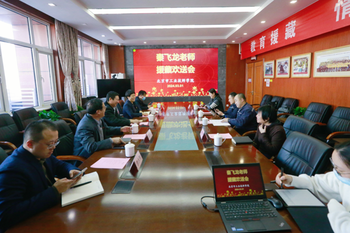 在启程前,技师学院举行秦飞龙老师援藏欢送会。BBIN·宝盈化工集团党委常委、组织部部长刘士义代表集团党委欢送秦飞龙老师。技师学院有关领导、相关部室和专业系负责人参加欢送座谈。