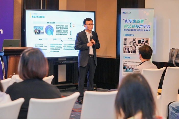 论坛中,北化生科党总支书记、总经理申海成从专业运营空间、专业运营团队和专项产业基金等多个方面,深度聚焦以核酸药物为代表的五大细分赛道,向与会者诠释“国际生物岛”独有的“1公里科学家邻里”生态,并通过高标准技术平台、专项基金、技术审评、专属空间、高科技人才和公共服务六大生态要素协同,系统阐释从“0-1-N”的产业化路径。